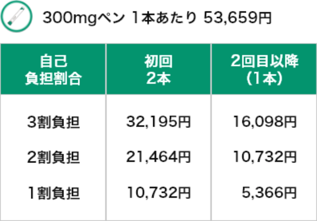 デュピクセントの薬剤費の目安