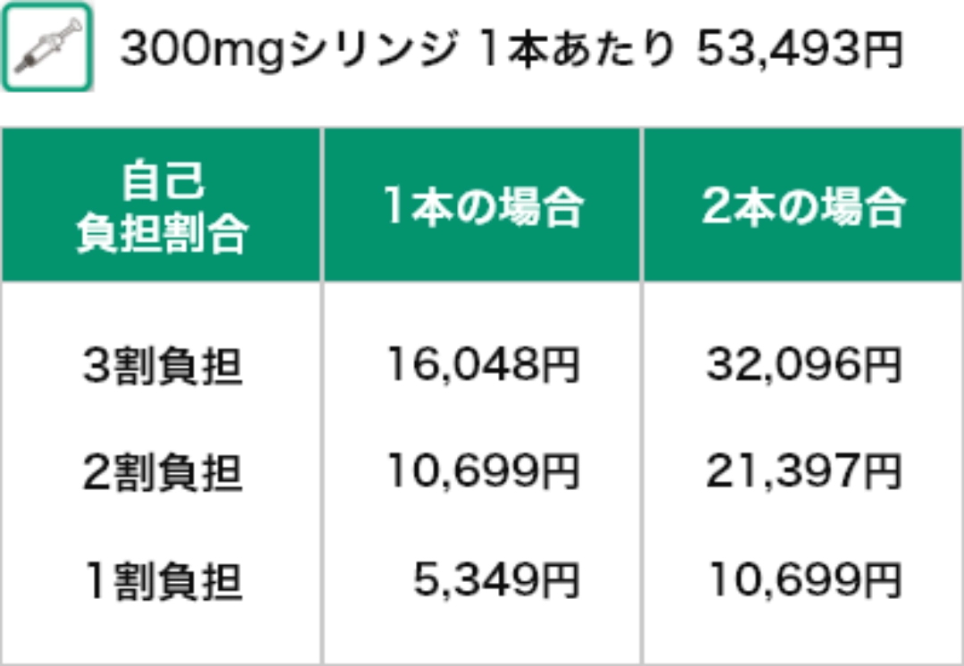 令和7年11月時点のデュピクセントの薬価をもとに計算しています。